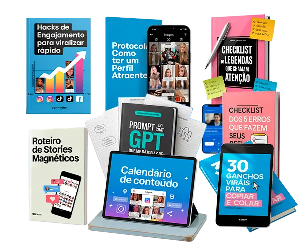 Aqui você vai encontrar o que postar a cada dia. O conteúdo com formato, gancho e ideia de tema. Sem enrolação e direto ao ponto. 100% prático e aplicável na mesma hora.
